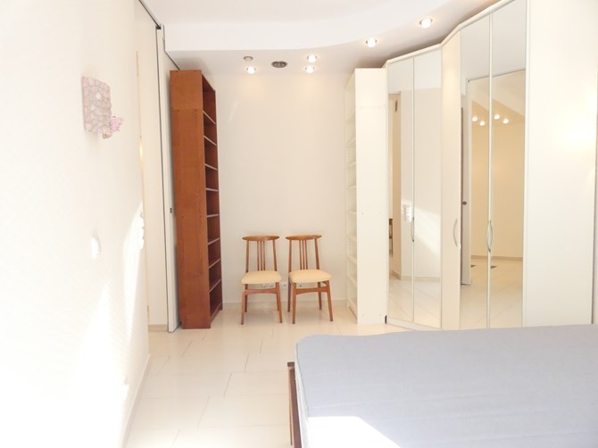 Sypialnia: łoże małżeńskie, 2 szafy, 2 regały.