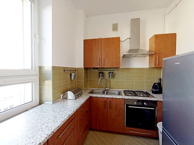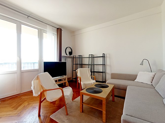 W skład mieszkania wchodzi jasny salon z wyjściem na balkon i widokiem na panoramę miasta, sypialnia z dużą szafą, oddzielna kuchnia w pełni wyposażona w sprzęt AGD, łazienka z wanną oraz przedpokój.