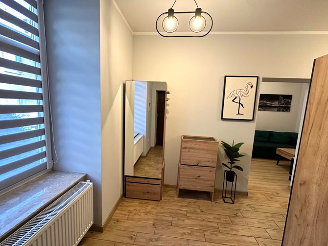 Przedpokój: szafa, kwietnik.