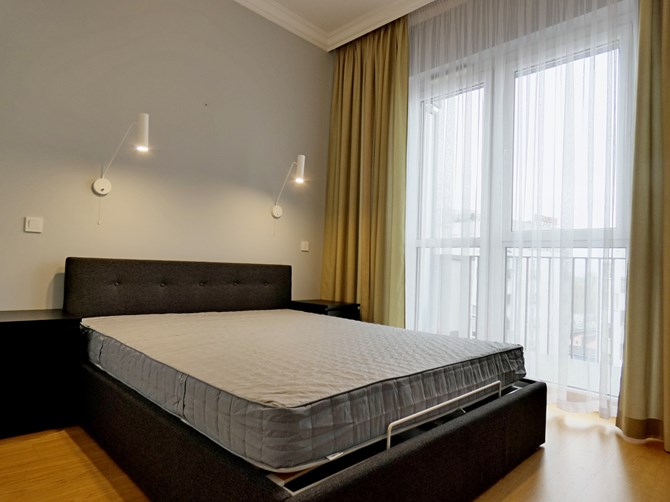 Składa się z salonu z aneksem kuchennym, sypialni, łazienki oraz balkonu.