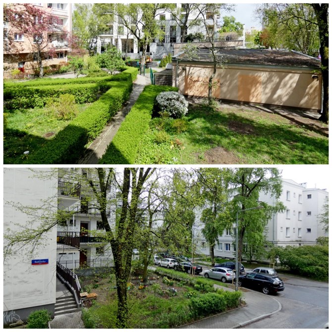 Budynek oddalony od głównych ulic, jest cicho i zielono.
