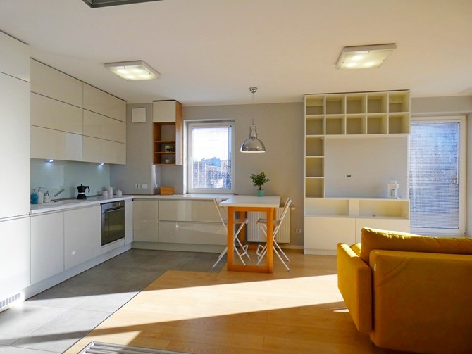 Przestronne, jasne mieszkanie w nowoczesnym budynku.