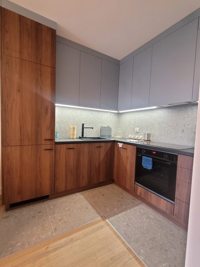 Aneks kuchenny: piekarnik, płyta elektryczna czteropalnikowa, lodówka, zamrażarka, zmywarka, czajnik.